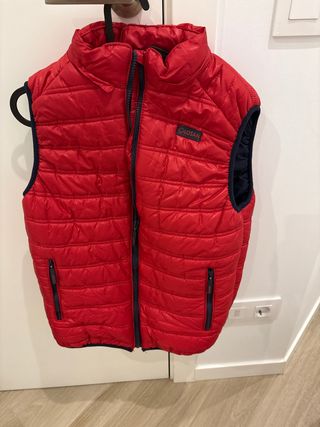 Chaleco acolchado de color rojo, perfecto para añadir una capa extra de abrigo. - Diseño acolchado. - Cremallera frontal. - Bolsillos laterales con cremallera.