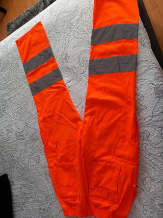 Pantalones de emergencia sanitarios, ideales para alta visibilidad. Son de color naranja y gris, con detalles reflectantes. - Bolsillos laterales - Diseño cómodo y funcional - Tejido resistente Son talla M, pero a mi qye suelo utilizar tallas 42 me quedan perfectos. Usados únicamente para las prácticas de GM de técnico emergencias sanitarias