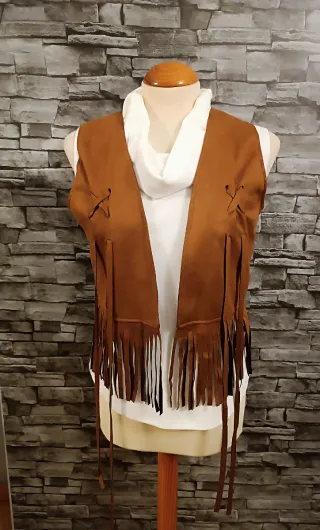 Chaleco como nuevo de estilo western con detalles de lazada y flecos decorativos en el bajo y los laterales. Se hacen descuentos llevando más artículos de mi perfil.