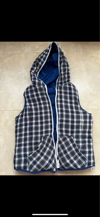 Chaleco reversible con capucha. - Diseño acolchado. - Cremallera frontal. - Forro interior a cuadros.