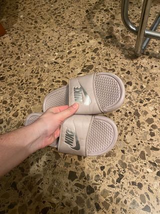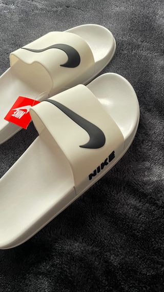 Chanclas Nike con un diseño moderno y cómodo. - Tira superior blanca con logo Nike. - Suela negra con textura. - Diseño unisex.
