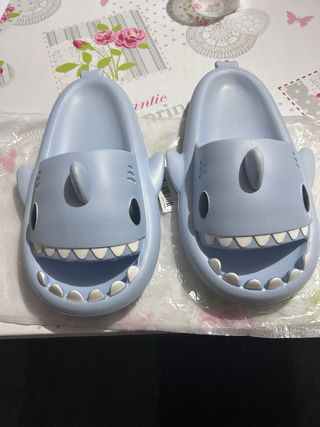 Divertidas chanclas con diseño de tiburón. Perfectas para un toque original. - Diseño de tiburón. - Color azul.