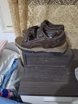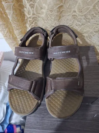 Chanclas Skechers para hombre en color marrón. Perfectas para el verano. - Cierre de velcro ajustable. - Suela cómoda y antideslizante. - Diseño abierto para mayor frescura.