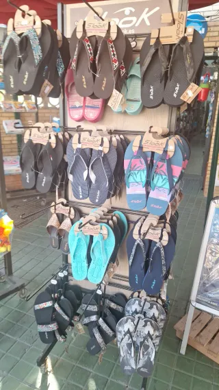 Chanclas de la marca Sloak con un diseño llamativo. - Tira multicolor con detalles. - Suela cómoda para el día a día.tallas surtida liquidación de tienda.precio por unidad total 124 unidades regalo ecspositor