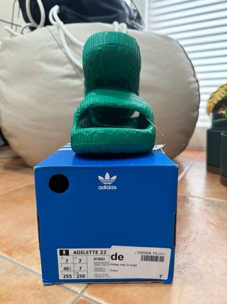 Vendo chanclas Adidas Adilette 22 de color verde, talla 40,5. Están nuevas, en su caja original. - Diseño acanalado. - Cómodas y ligeras. - Perfectas para el verano.