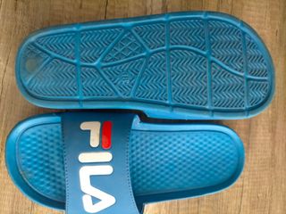 Vendo un par de chanclas Fila. Son de color azul y blanco, y están en buen estado. - Ideales para el verano. - Cómodas y ligeras. - Perfectas para la playa o la piscina.