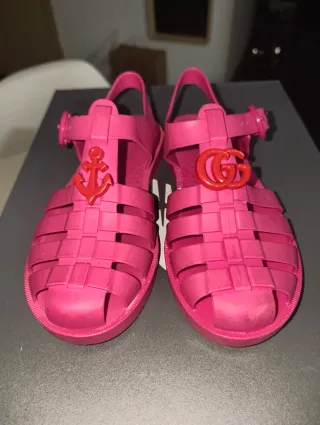 Vendo estas lindas chanclas de la marca Gucci originales al 100%100 talla 31 y en buen estado tiene un poco de desgaste pero no tiene rotos ni descocidos se le quedaron pequeñas y ya no las utiliza hago envio rápido vendedor serio mis valoraciones lo certifican