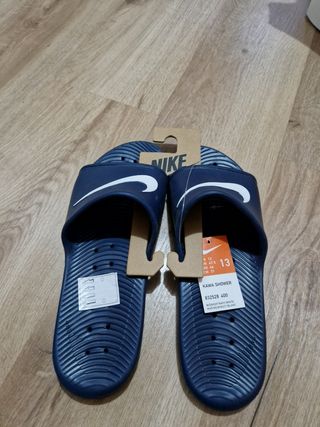 Vendo chanclas Nike Kawa Shower para hombre, talla 47.5, color azul marino. Están nuevas, con etiqueta. - Diseño cómodo y ligero. - Material de goma resistente. - Perfecto para verano.