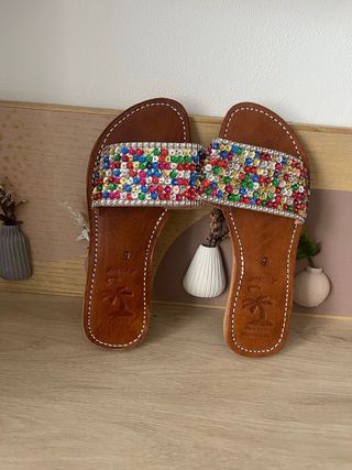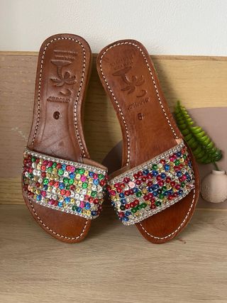 Sandalias de cuero con pedrería talla 39