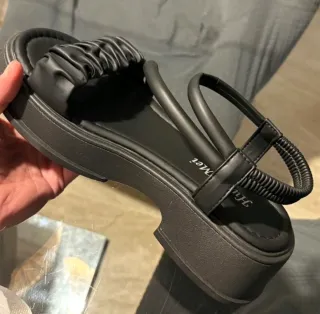 Sandalias de plataforma negras, para 25cm del largo del pie. Sin utilizar.