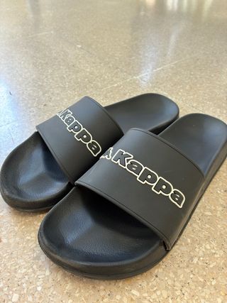 Vendo chanclas Kappa originales, color negro y en buen estado ✅ Diseño cómodo y práctico, perfectas para la piscina, la playa o para estar en casa. Ofrecen una buena sujeción y plantilla ergonómica para mayor confort en cada paso 👣 🔸 Detalles: - Talla estándar 43 - Material resistente, fácil de limpiar y secar - Pequeños signos de uso y leves marcas en la tira, pero funcionalidad intacta (ver fotos) - Suela antideslizante y banda ancha para mejor ajuste 🔸 Estado: Buen estado general 💰 Precio: 9€ (no negociable) 📍 Entrega en mano o envío a toda España 🚚