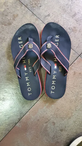 Chancletas de la marca Tommy Hilfiger. - Diseño en color azul marino con detalles en rojo y blanco. - Tira con el logo de la marca. - Estampado EST. 1985 en la plantilla.