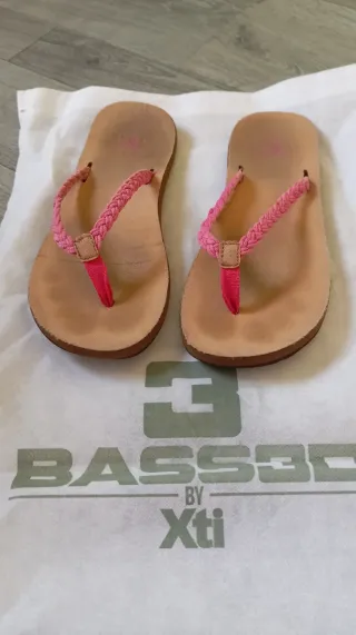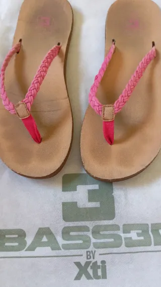 Chanclas de la marca Xti en talla 39. Combinan tonos beige y rosa. - Tira trenzada en color rosa. - Suela cómoda de color beige. - Talla única poco grande, ya que yo llevo el 37 y me están perfectas.