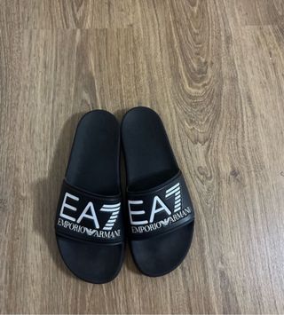 Vendo un par de chanclas Emporio Armani EA7. Son de color negro y tienen un diseño elegante. - Están en muy buen estado. - Ideales para el verano.