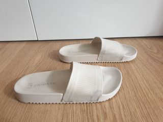 Chanclas Adidas con un diseño llamativo y moderno. - Tira superior con acabado holográfico iridiscente. - Suela negra con logo de Adidas grabado. - equivale talla 36-37 - un solo uso Zona de recogida la isleta