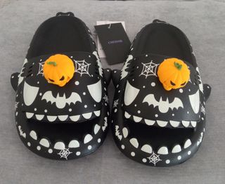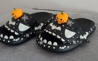 Preciosas Chanclas. Talla 36–37. Diseño blanco y negro tipo tiburón, con calabaza decorativa en la parte superior. Muy llamativas, originales y cómodas. Nuevas, sin estrenar, con etiqueta y bolsa original. Ideales como regalo divertido o para lucir en casa con estilo. Soy de Canarias y wallapop no hace envíos Canarias a Península. Si te interesa te las puedo enviar x Correos fuera de la plataforma.