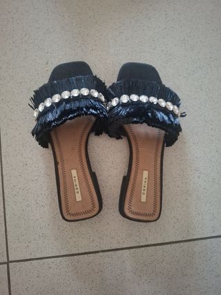 Sandalias tipo pala de Zara con detalle de cadena dorada. - Diseño moderno y elegante. - Material de alta calidad. - Perfectas para cualquier ocasión. - A estrenar.