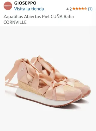 Zapatillas abiertas de la marca GIOSEPPO, modelo CORNVILLE. "Paula Exebarría" Ed Limitada - Material exterior de piel y rafia. - Cierre con cintas. - Cuña. - Color rosa y beige. Recién llegada por Amazon hoy 20 de Octubre. Nuevas sin sacar de la caja.