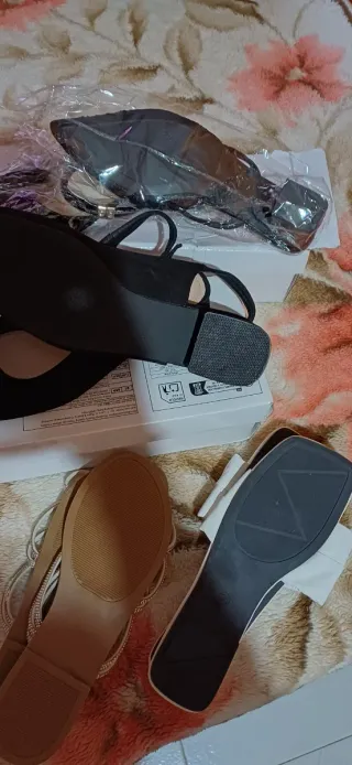 Sandalias talla 35, de estilo pala con dos tiras y hebillas metálicas. De las Marca Pullandbear, estan como nuevas, las use una sola vez. - Diseño de dos tiras ajustables. - Detalle de hebillas plateadas. - Suela con acabado en esparto.