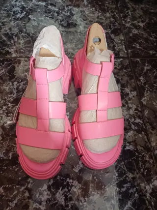 Sandalias cangrejeras con plataforma en color rosa. - Diseño de tiras entrecruzadas. - Suela gruesa con relieve. -confortables y ligeras -Nuevas: con etiqueta