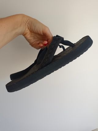 Chanclas Reef en color negro. Perfectas para el día a día o para la playa. - Tira textil con diseño trenzado. - Suela cómoda, mullida y texturizada. Usadas un par de veces UNISEX