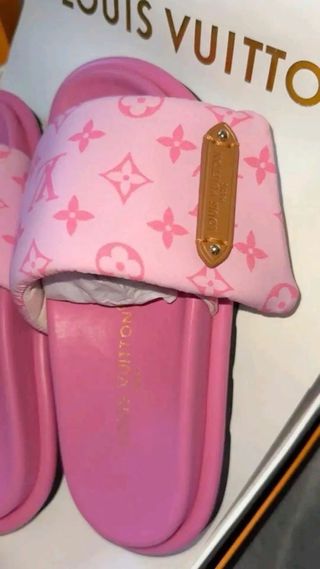 Chanclas de la marca Louis Vuitton en color rosa. - Diseño con monograma LV. - Detalle metálico en la tira.