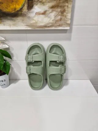 Chanclas cómodas de goma EVA. - Material: Goma EVA. - Diseño con dos tiras ajustables. - puestas 1 vez, se venden por no poder usarlas por discapacidad.
