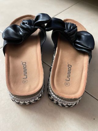 Sandalias negras y blancas, ideales para la piscina. Son de la talla 37. - Diseño elegante y sencillo. - Cómodas y ligeras. - Perfectas para el verano.