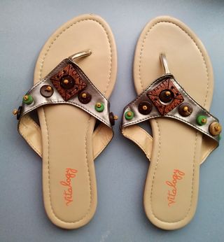 Chanclas planas beige talla 38