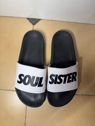 Chanclas de la marca Soul Sister en perfecto estado. Diseño moderno y cómodo. - Banda superior blanca con logo. - Suela negra. - Talla única.