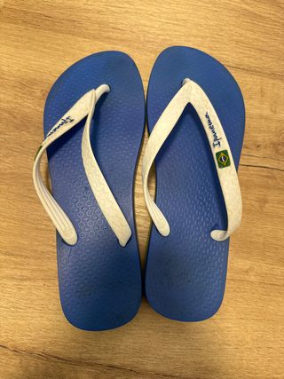 Chanclas Ipanema con un diseño moderno y cómodo. - Tira blanca con logo y detalle de la bandera de Brasil. - Suela azul con textura. - Talla 41-42.