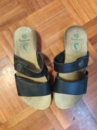 Chanclas negras, talla 37. Tienen pequeños defectos por el uso que se pueden apreciar en las fotos.