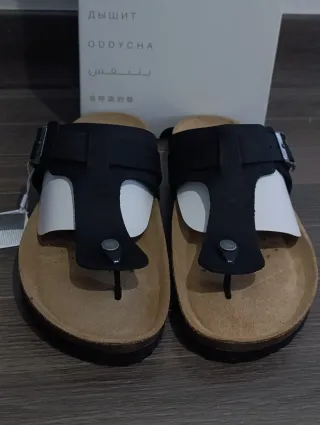 Chanclas estilo Birkenstock en color beige. Son cómodas y versátiles. - Diseño con tira ajustable. - Suela de corcho. - Materiales de alta calidad.