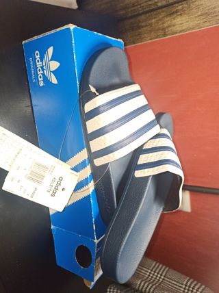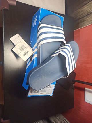 Chanclas Adidas Adilette originales en color azul y blanco. Talla 38. Tallan pequeño. Nuevas en Zalando 34'95€ - Diseño con las tres rayas icónicas de Adidas. - Banda superior ancha con el logo de Adidas.