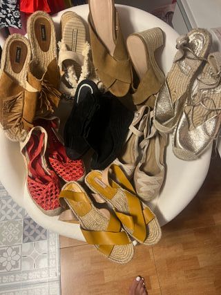 Preciosas sandalias de esparto, ideales para el verano. Se venden dos pares de sandalias de cuña de Mango y un par de Zara. - Son de diferentes tonos marrones y beige. - Están en buen estado. - Perfectas para cualquier ocasión.