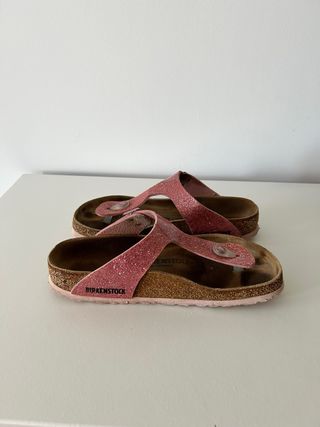 Sandalias Birkenstock Gizeh para niñas, color rosa brillante. Ideales para verano. - Talla: 37 - Material: Corcho y glitter. - Estado: Usadas, en buen estado.