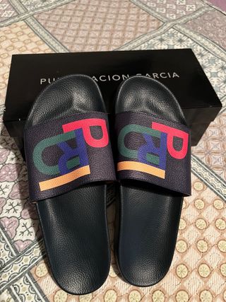 Cholas de la marca Purificación García, a estrenar. - Diseño con logo multicolor. - Talla 42. purificación, el ganso , scalpers , silbon , Ralph Lauren , Gucci , boss