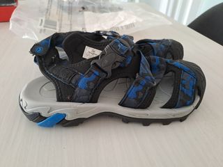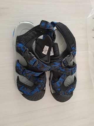 Se trata de unas sandalias o chanclas atadas a todo el pie de la marca Jhayber en azul para niño y de la talla 36. Están prácticamente nuevas porque solo se las puso un par de veces. Ya le quedan pequeñas.