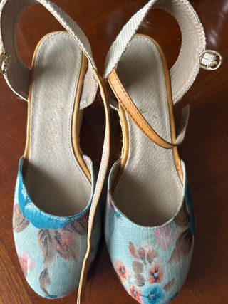 Sandalias tipo cuña, número 41. Poco uso, tiene un roce que se pueden ver en las fotos.