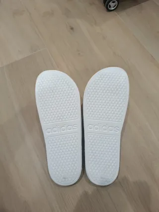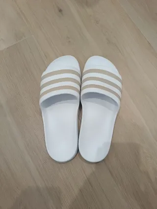 Chanclas de la marca Adidas en color blanco y beige. Son cómodas y ligeras. - Diseño con tres bandas. - Suela de goma.