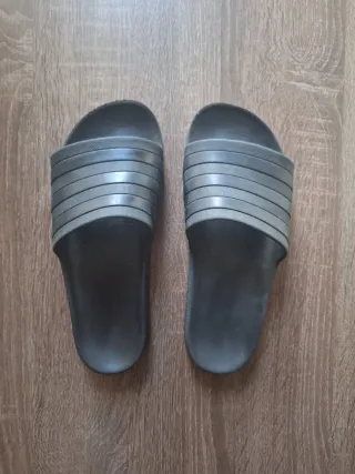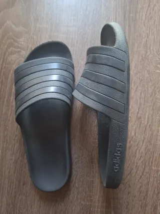 Chanclas Adidas en color negro, talla 40. Se encuentran en buen estado. - Diseño con tres bandas. - Tira ancha con relieve.