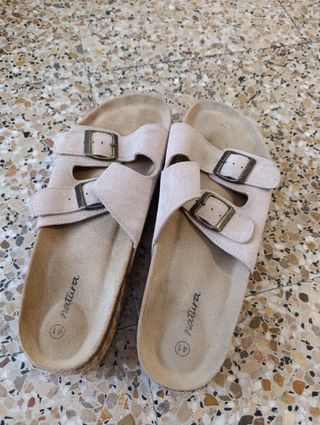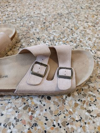 Sandalias de la marca Natura en color rosa y talla 41. Son cómodas y versátiles. - Diseño con dos tiras ajustables. - Hebillas metálicas. - Suela de corcho.