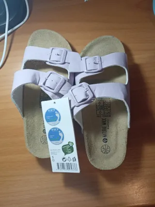 Sandalias de la marca Natural Walk en color morado y talla 37. Diseño con dos tiras y hebillas ajustables. - Tiras de material sintético. - Plantilla de corcho ergonómica. - Suela de goma antideslizante.