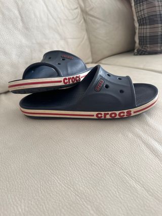 Chanclas Crocs en color negro, talla 38/39. - Diseño clásico con orificios. - Suela con relieve para mayor comodidad. Usadas solo una vez pero las vendo por pequeñas ya que son 38/39 y llevo 40 pero pense que me valdrian.