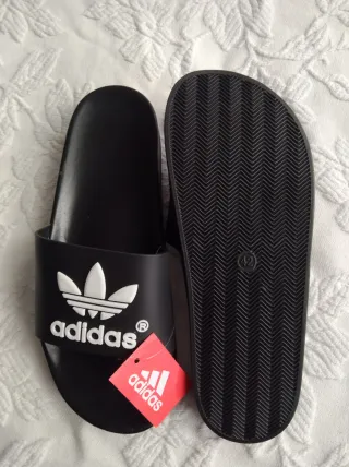 Vendo un par de chanclas Adidas nuevas a estrenar. Son de color marrón y tienen un diseño elegante y sencillo. - Ideales para piscina o playa. - Material de alta calidad. - Talla (especificar talla si se conoce).