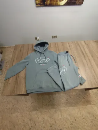 Conjunto de chándal completo. - Sudadera con cremallera y capucha. - Pantalón de chándal. - Bolsillos delanteros en la sudadera. Nunca usado. Talla S/M