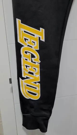 ●Original chándal de Área Zero inspirado en la estética de *Los Angeles Lakers* ●Corte tipo jogger ●Cinturón elástico, ajustable con cordon ●Bolsillos laterales con cremallera ●Buen estado con algunos desgarros por el uso, por ello el precio bajo.