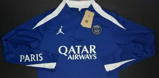 Chándal del Paris Saint-Germain con diseño Jordan. - Color azul con detalles blancos. - Logo de Jordan y escudo del PSG. - Inscripción QATAR AIRWAYS en el pecho. - Inscripción PARIS en la manga.