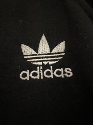 Chándal Adidas de color negro con el icónico diseño de tres rayas blancas a los lados. - Diseño deportivo. - Detalle de logo de Adidas. - Cremallera en el bolsillo lateral.