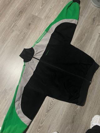 El clásico conjunto que todos buscan y pocos encuentran, encima a un precio tan jugoso... presenta un par de minucias en las cremalleras que se pueden llamar virtudes: 1. La cremallera de la chaqueta le falta el enganche, ideal para que no te hagan la bromita de bajarla y solo tú seas capaz 🤝. 2. Las cremalleras de los bolsillos están sueltas, no pasa nada ya que le da un toque inusual y puedes almacenar cosas igual... 🥂. Por lo demás esta como nuevo, solo queda comprar y disfrutar.